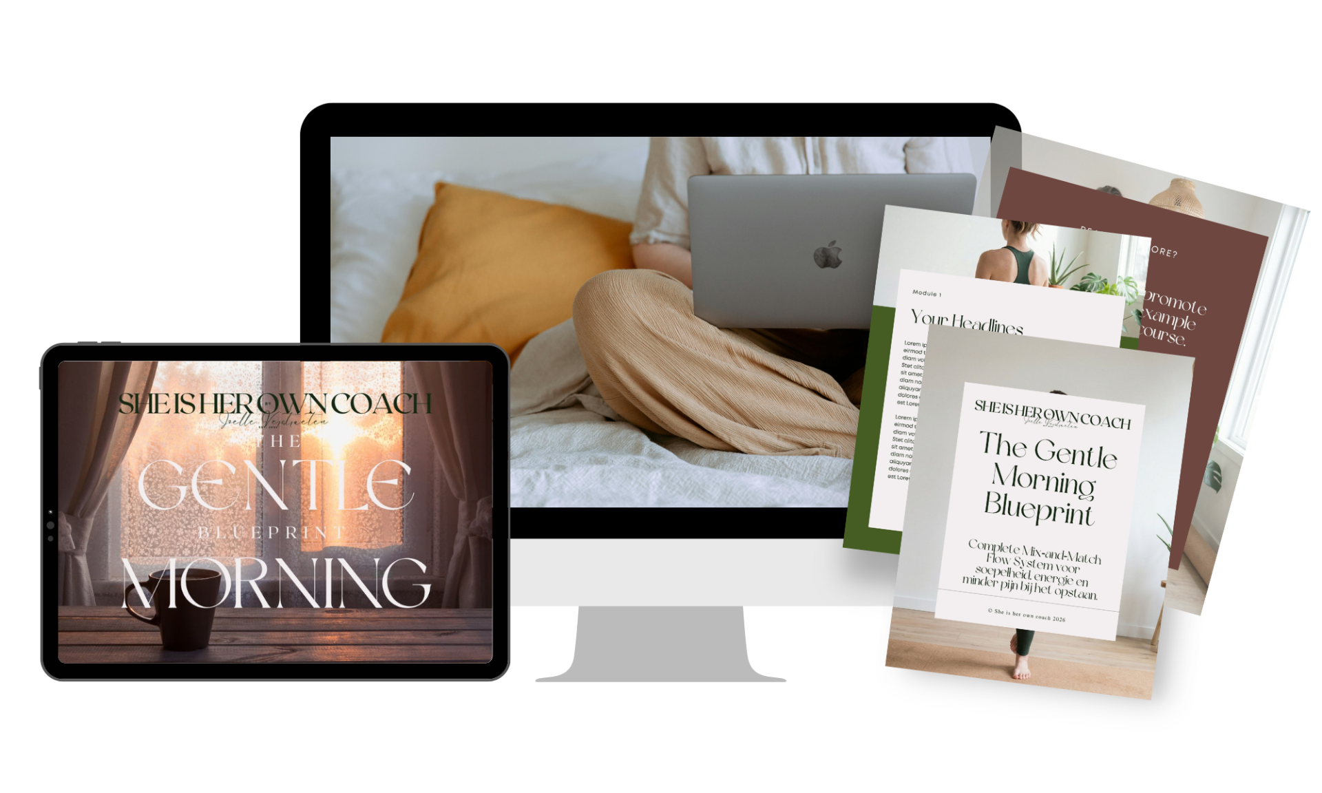 Het geeft je drie intuïtieve flows, eenvoudige check‑in tools en mini‑rituelen die je ochtenden voorspelbaar en licht maken, zelfs als je nu vaak zwaar, stijf of mistig wakker wordt.